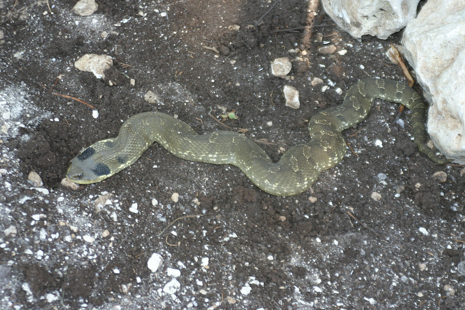 When this non-venomous snake is first encountered, it will flare its neck and head so that it somewhat resembles a cobra and hiss very loudly! If this doesn’t scare you away, the snake may roll over on its back with its mouth open and “play dead.” If you roll it back upright, it will flip itself back onto its back, as though insisting that it is dead!