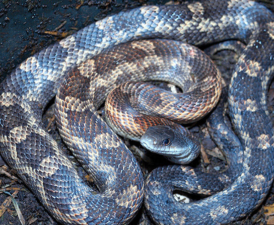 This snake will vibrate its tail, and depending on what the tail is hitting against may make a sound that will make you think that you are dealing with a rattlesnake, even though they have no rattle! While the juveniles are colored with brown blotches on a gray background, the adult’s dark gray to black blotches will be on a red, orange, yellow, or even white background, giving the snake a wide range of possible color combinations.