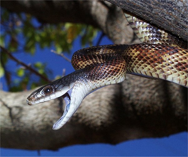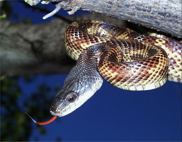 The Texas Rat Snake (Elaphe obsoleta lindheimerii) is probably the most common large snake found in Texas. The snake is often given the common name “chicken snake,” probably because of of it’s fondness for eggs, particularly a hen’s eggs. This snake is often misidentified for several reasons.
