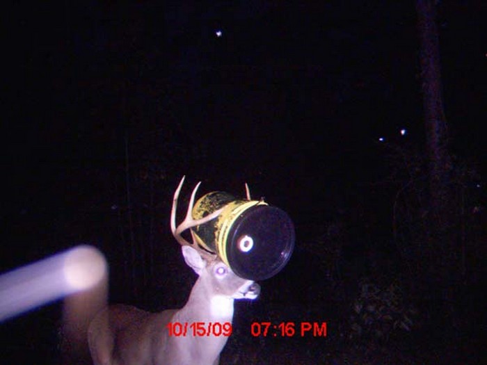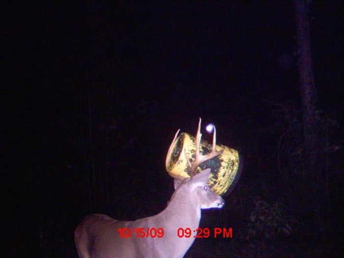 These pictures are of a nice white-tailed buck that was captured in some game camera photos in an interesting situation, to say the least! In fact, this is a middle-aged buck (probably 3.5 to 4.5 years old) with a nice set of antlers. I’m not sure how he got that bucked pinned between his antlers, but it’s there nonetheless. Like I said, deer are amazing, but some of the things they get into amaze me, as well!
