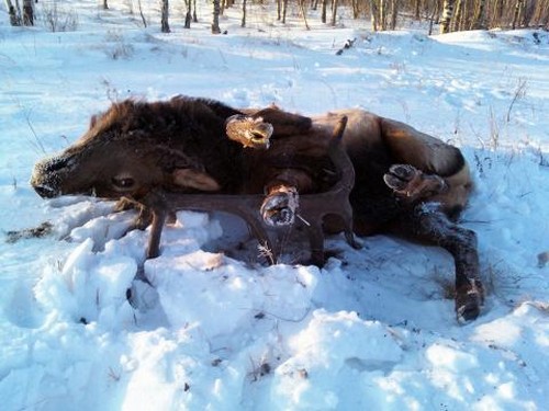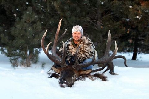 Whitetail hunter Ryan Muirhead had set out to fill his buck tag on December 12, the final day of Minnesota ’s muzzleloader season, but little did he know he would bump into a huge 9 x 10 bull elk with antlers that may rewrite the record books. The manner in which he found the bull was even more extraordinary…it was pinned flat on its back with its antlers stuck in the mud.