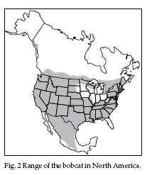 The gestation period in bobcats ranges from 50 to 70 days, averaging 62 days. Nationwide, young are born from March to July, with litters as late as October. The breeding season may be affected by latitude, altitude, and longitude, as well as by characteristics of each bobcat population. In Wyoming, births peak mid-May to mid-June and can occur as late as August or September. These late litters may be from recycling or late-cycling females, probably yearlings. In Utah, births may peak in April or May. In Arkansas, births may peak as early as March. Bobcats weigh about 2/3 pound at birth. Litters contain from 2 to 4 kittens. Kittens nurse for about 60 days and may accompany their mother through their first winter. Continue reading Bobcat Biology and Behavior