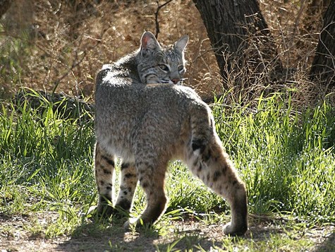 “The reclusive bobcat is active largely at night, although they frequently leave cover and begin hunting long before sundown. In hilly country, their presence can often be detected by their habit of dropping their feces on large rocks on promontories or ridges. Also, like the mountain lion, the males make scrapes–small piles of leaves, sticks, and so forth on which they urinate–along their travel routes, but these scrapes are smaller. Mock scrapes can be used against these animals for persons interested in trapping bobcat.