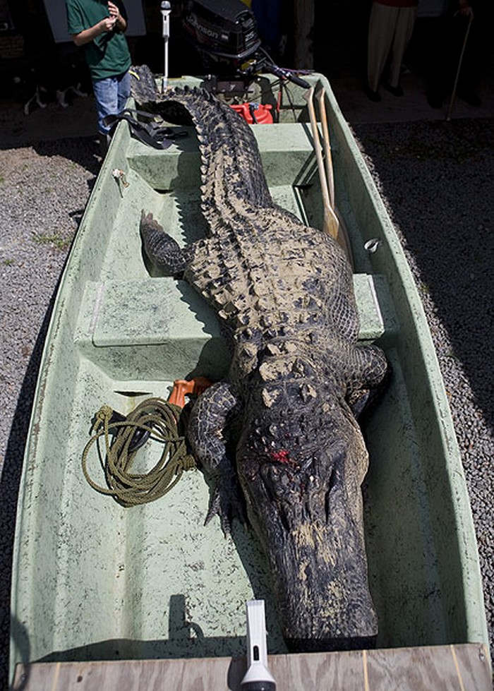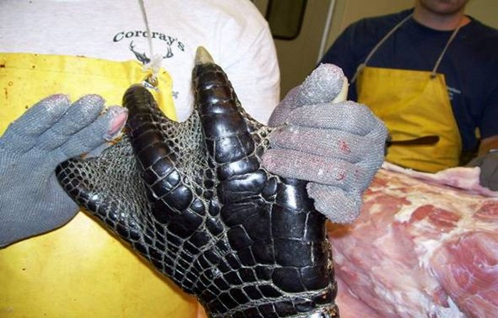 So with those kinds of numbers, regulated alligator hunting is more than warranted. Such was the case in South Carolina this year, where they also have a limited alligator season. The photos below were taken a few days ago at Cordrays meat processing and taxidermy in Charleston, South Carolina. This big male alligator was 14 feet long and weighed in at a whopping 1,000 pounds!
